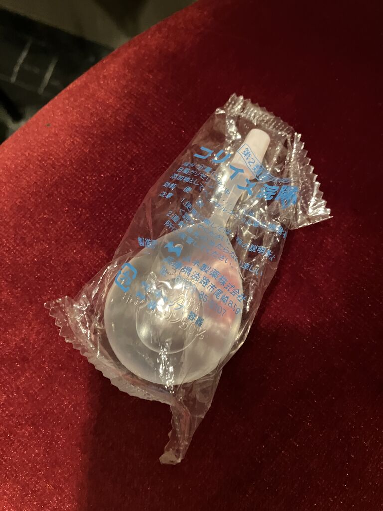 部屋に案内されると飲み物を勧められるので、遠慮なくお茶を頂く。そしてこのタイミングでスタッフさんに逆AFをどうするか聞かれるので「恐縮ですが、出来れば両方行けたらありがたいのですが...」と伝えるとイチヂク浣腸を渡してくれる。