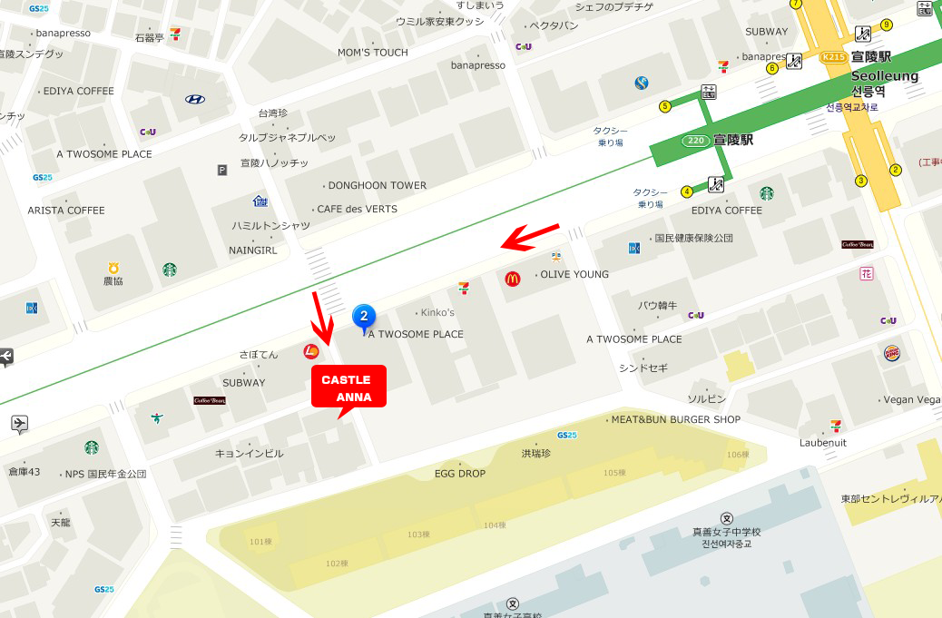 地下鉄2号線宣陵(ソンルン)駅4番出口から徒歩5分ほど