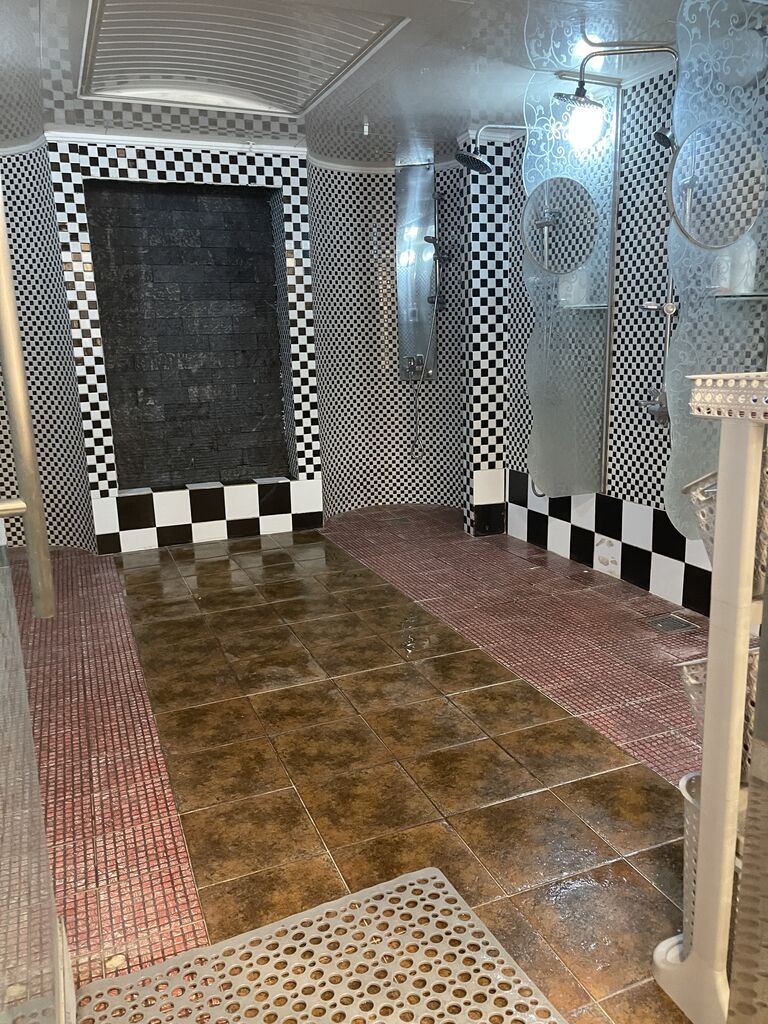 広いフロアの中心にシャワーがある面白い特殊な作り。