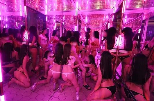 以前も使った写真だが、部屋はこんな感じでベッドとその奥に浴室(ボディマッサージ用ベッド付き)の設備で、ドアなど一切なく、通路から室内が丸見え。